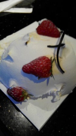 最近有朋友过生日,在仟吉拎了个蛋糕。这次拎了个6寸的,真的好小!一个直径15cm的蛋糕,本来准备改成8寸的,因为人少而作罢。去买的时候都晚上了,就剩下两个,本来还犹豫不决的,结果店员直接通知我其中一个泡芙塔已经被预订掉了,泪。早上打电话过来定,别个还说直接来就好了,预定要提前一天!剩下一个团团圆圆,没什么挑头了,拿了走人。么想到,这个还不错耶!虽然不怎么好看,雪白雪白的,点缀了几个草莓,怎么看都不好看,但是味道还可以哟。草莓很新鲜,中间的夹层里还夹了一层草莓,太爽了有没有!奶油有点厚,虽然我爱吃,他的味道也很正,但是还是太厚了,吃不完呀。中间蛋糕到不觉得特别好吃,好是好,但是也没有特别惊艳的感觉。整体来说,仟吉的东西还是有保证的,最主要是新鲜。