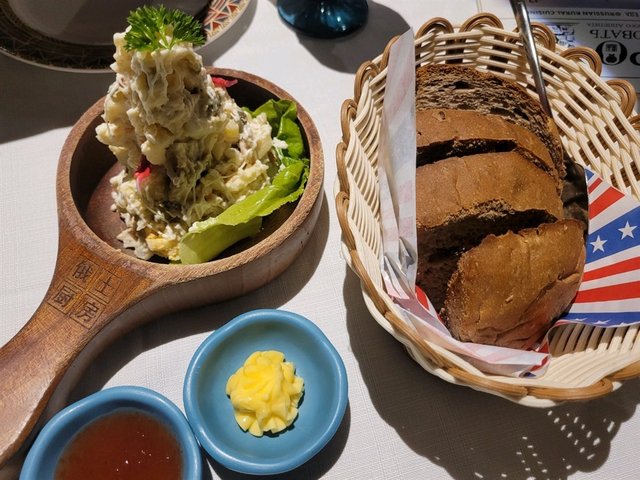這家餐廳的佈置真的好浪漫,一進門就驚艷到了,舉目望去餐廳裡成片的白樺林,彷彿穿越到了俄羅斯的某個角落。厚重的木質家具、彩繪的玻璃吊燈配上、牆上掛著俄羅斯風景油畫,身邊擺放著套娃🪆的小裝飾,配上優雅的燈光,每一個細節場景都把俄羅斯的優雅展現的淋漓盡致,氛圍感十足。除了大廳座位,還有幽暗的小包間,更加安靜,耳邊傳來悠揚的樂聲,入座後店員非常熱情,服務規範有序,服務員都身著俄羅斯傳統服飾,沉浸式氛圍讓人好像穿越了【莫斯科紅菜湯】紅菜湯作為俄羅斯美食的招牌,肯定要點的,除了牛肉,裡麵食材豐富喝起來沙沙的口感十分綿密,酸中帶甜,濃而不膩。【俄式拌香雞】經典的俄式沙拉,以雞肉、荷蘭馬鈴薯、蛋白、胡蘿蔔、蘋果、酸黃瓜等組合而成,甜膩口感不過分,清香迎面而來。不僅如此,它的雞肉清香四溢,一點也不油膩。【黑列巴】麵包的外皮酥脆,內部柔軟,配上奶油或草莓果醬一起吃,香氣四溢。【俄式傳統肉餅】感覺是純瘦肉,肉餅吃起來很鮮上面的醬汁應該是咖哩汁旁邊配細膩的土豆泥,挖一勺土豆泥再加點醬汁和肉餅吃起來好香。細膩的馬鈴薯泥,挖一匙馬鈴薯泥再加點醬汁和肉餅吃起來好香。【莎士雷克雞肉】招牌菜,端上桌一大塊真是驚人,胳膊一樣粗的肉塊塊,真的好大,沒想到這麼大塊雞肉外脆裡嫩又多汁,火候到位,讓人欲罷不能,配上酸黃瓜和甜辣醬,解膩勁爽‼…查看更多