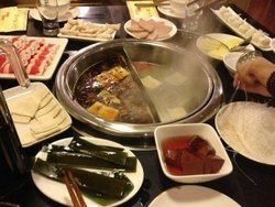 开在南京路上的一家火锅店.价格上倒是蛮便宜的去的时候比较晚.里面大部分服务员都等着下班了。叫了半天才有人招呼。而且点的菜是需要自己拿的.而且这也不是什么自助餐。锅底看着品种蛮多的,可里面基本上什么也没有的。而且汤底基本上都是调出来的.蔬菜也不是很新鲜,部分有点发黄。羊肉比较的一般,下锅后缩水严重,到最后只有很小的肉,味道上也尝不出这个是羊肉。查看更多