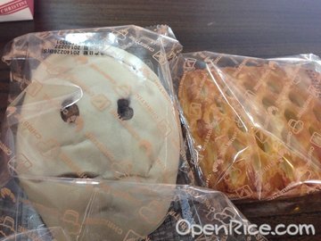 公司福利的一部分吧~经常会发这家的面包券的~这家离单位不远,经常买点面包什么的当早饭吃吃的~墨西哥面包,墨西哥皮一直都喜欢的呀,酥酥甜甜的,面包里面是奶酥+葡萄干,料蛮足的,蛮有分量的~馅料偏甜腻了点~脆皮裸麦,这款算是比较健康的,外面有一层白色的皮,脆脆硬硬的,面包是粗粮来的,蛮有嚼劲的,混合蛮多的葡萄干、核桃仁,不甜腻,就是料少了点~肉松蛋黄面包,丹麦面包,推荐的,里面的肉松、咸蛋黄哈多,喜欢的~