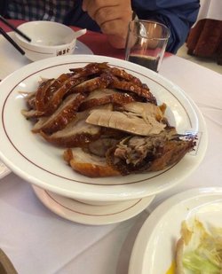 第一次吃全聚德的时候是在北京,回上海后发现原来也有全聚德的,上海的全聚德装修的并没有北京那么古色古香,烤鸭却是一个味道,厨师的手艺也都差不多,烤鸭鲜嫩香脆,肥美感也是很足的,鸭舌头觉得好吃,舌头鲜嫩,肉都快弹出来了,当做零嘴来吃,没几下就吃光了。查看更多