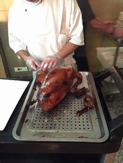 在全聚德胡吃海喝了一顿,叫了一桌人吃烤鸭,鸭子超级大的,厨师片皮,每一片基本都保持的同样的厚度和大小,鸭肉很热,很香脆,汁水也很足,特别好吃,觉得这个价格还是挺值得的,还买了鸭架吃,也同样的好吃,外面一层皮是最香的,蔬菜什么的比较平平。查看更多