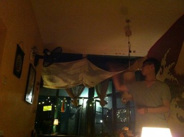 在南锣里边的帽儿胡同里边。地铁南锣下了顺北一直走,见帽儿胡同往西,路北边。点了长岛冰茶和mojito。这里的mojito不太正宗,不够薄荷味道很淡。长岛冰茶味道特别赞。老板说俗称把妹酒,感觉没什么劲儿,但是喝完就有点晕乎的感觉。里边的沙发座挺舒服的,适合小憩。老板是北京爷们儿 特好客 人特敞亮