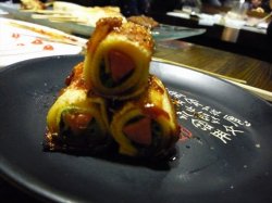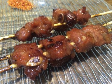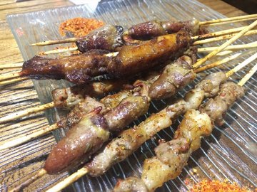 咳咳咳,姐姐突然想吃烧烤的节奏,于是乎果断去了家门口的这家。5点多到店,点好菜就已经是很火爆的状态了,等吃完饭出来,门口已经若干排队的食客了,艾玛,果然是夏天快来了。霸道的选择四人桌,因为拿的大包小包的实在是太多了啊啊啊•••桌上有一本菜单,扭头在备用菜单架子上拿了一本。一会儿服务员就过来了,质问我们是不是拿了隔壁桌的菜单,一桌只给一本的。我去•••我解释了我是从后面的架子上又取了一本,她这才悻悻离去。点餐后只有沙拉和砂锅上来了,等串时间半小时啊半小时•••金枪鱼蔬菜沙拉,18米。说是金枪鱼沙拉,实际米有多少鱼,不过好在菜菜的量够大,看起来还是蛮实惠的。千岛酱拌菜叶,就是这样而已。水分太大了,基本就是洗完菜直接放盆子里的节奏啊,盆地华丽丽的都是水。只吃了上面一层•••砂锅豆腐,8米。价格很实惠,玉兰片丝、豆腐、鸡蛋、粉丝,量也是蛮大的。醋味和黑胡椒味道都很浓郁,醋椒豆腐果然是很醋椒啊。烤串思密达终于陆续上桌,挨个点评~蜜汁排骨,5米一串。叉烧肉的感觉,外面一层是甜味的酱料,排骨肉经过腌渍,叉烧排骨的化身,入口很好吃,后面有点腻口。烤肉筋,4米一串。不吃肥肉党伤不起,果然还是不适合吃介种类型。即便是肥瘦相间,还是觉得有点腻。不过肉质算嫩,口感还不错。烤羊肉串,3米一串。鸡心,2米一串。羊肉串非常小,不推荐,冒米有吃。鸡心没有腌渍,不入味,吃了一个就放弃了。烤鸡胗2米一串,无爱。烤鱿鱼头,3米。光是看外形就很可怕了,小伙伴的菜。烤玉米,3米一串。这个是冒的菜咩,煮过的粘玉米经过烤制,虽然没有太大调味,还是很香甜的,火候不错。五哥烤翅,蒜香烤翅,6米一串。五哥比较推荐,有麻椒的香味和淡淡的甜味,吃起来很香嫩,肉质也不错,就是鸡皮稍有点肥。蒜香的重口味一些,食蒜爱好者的最爱,果断不是冒的菜。两人87米,还算实惠的价格。菜品种类很多样化,意面蘑菇汤炒菜烤串甜品鸡尾酒应有尽有,不过服务有待加强。…查看更多