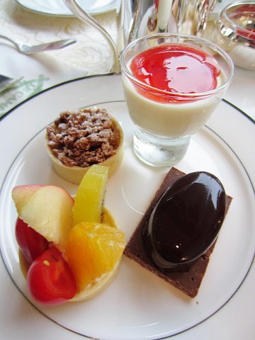 外面应该加个导视牌的,让我们好找啊。其实很喜欢他家的浅绿色调及欧式风格的布艺沙发软座。每张桌上一朵淡粉色的玫瑰,感觉好浪漫哦。环境特别适合情侣约会。有安静,又@华润成都万象城 送的@LeCamelia_凯玫丽亚 198,华丽丽双人下午茶套餐。又是一个美妙的下午。茶是一人一壶。点茶的时候都是用装各种茶叶的小瓶,有标签名字。让人更直观的了解自己点的是什么~我是选择了餐单上推荐【路易波士】单点58,这个是我比较喜欢的味道,红茶类,有清新淡雅的香味。第一次尝试,真心觉得不错,在好奇之下百度一下。【路易波士茶】含丰富的抗氧化剂, 并有比绿茶还多的茶多酚含量,更指出其针对抗机因突变、抗癌、抗发炎及抗病毒的特殊效用。而且不同于一般红茶及绿茶,路易波士是完全无咖啡因的天然饮品。真不愧为推荐咯。【锡兰红茶】我觉得算是味道比较重的红茶类了,与安徽祁门红茶,阿萨姆红茶,大吉岭红茶并称世界的四大红茶。虽然不知道上成的锡兰是个什么味,但这个我也觉得很好喝了。不得不说的是装茶的壶,金属器皿,那个烫啊,不小心被烫了两下,而珊珊说的越好的茶壶就会越薄,传热越快。茶杯也灰常的可爱了,一朵是藤蔓花边,一朵是小草莓碎花,卡哇伊呢!再两壶茶上来之后的三层茶点闪亮登场。店员都会来细心的介绍每层每种咸点,甜点。有大有小,颜色又缤纷多彩,有木有闪闪发光冒泡泡的感觉。三层一共十种,虽然每样分量都很少,但这个配上红茶真的可以当一个两人正餐了。两种【三明治】食材都还是很新鲜,但还是算比较普通吧,虽然也有金枪鱼但还是没有赛百味好味咯。喜欢【松饼】的口感,非常的酥软。二层架上的两种【松饼】几乎没有差别,就是多了葡萄干的。吃到重复的东西比较难受。有三种酱,草莓,柠檬和奶油可蘸松饼用。相比之下还是喜欢草莓的啦~【巧克力】的什么东东,是我们都喜欢,果然女生还是没有办法拒绝巧克力的诱惑,柔软细密之感,美哉~【苹果塔】挺特别的,我比较满意这个的味道,又不算很甜。其他的不拉不拉的~都没有什么深刻的印象,比较普通。这么些,如果不配茶的话还真有点hold不住了。一口点心,一口茶,都会感慨一声,还是茶好喝啊。服务。店员们都很有礼貌,笑脸迎人,还会贴心的送来置物篮放包,非常不错咯。…查看更多