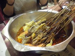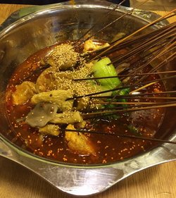 店面还是比较令人难忘的!对于不太吃辣的人来说,口味也是比较难忘的!串串的种类比较多,所有能想到的肉类和蔬菜都可以拿来做串串。比较喜欢的有土豆、冬瓜、海带,金针菇之类比较吸油的蔬菜。肉类比较喜欢鹌鹑蛋、甜不辣之类的丸子。鸭舌、鸡翅也是首选呢!如果觉得比较辣可以点花生核桃奶,解辣的!…查看更多