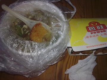 包旺锅贴还是蛮好吃的呢~锅贴的话至少很干净吃的很放心~外面的很多锅贴店都吃起来很油腻,包旺的锅贴吃起来表皮有点脆脆的,里面的肉质吃起来口感还是很紧实的,而且也不是很油腻~蘸点醋很开胃呢~一两锅贴一碗小馄饨~吃的又干净卫生又满足价格也实惠~