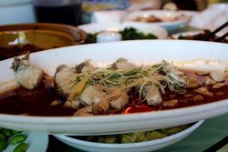 十碗头开在森林公园对面,节假日生意还是很好的,我喜欢他家的清蒸鲈鱼,鲈鱼基本是1斤多一点,味道好,鱼肉比较嫩,处理的也比较感觉,放了调料蒸的,非常香,而且入味,鱼刺比较少
