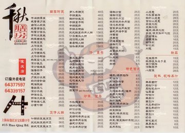 千秋膳房 (上海) 网址: https://s.openrice.com/KtLS100ERi000 地址: 上海宝庆路15号(复兴中路口) 电话: +86 6437 7597