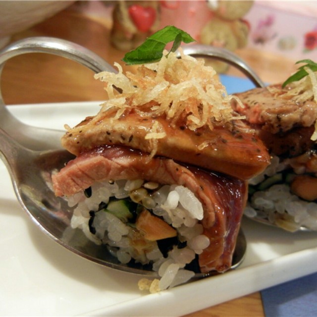在情人节当几日在点评秒到2.14的50元代金券,秒了2张~秒到后,就电联商家,和服务生MM确认可以用2张,也预约好了~情人节当天去了千艾创意寿司,服务生MM说规则修改了~上网一查,还真真是未曾想到,事隔一日之后,商家在页面修改了规则~每桌限用一张~罢了罢了~这一切解释权都归商家所有~也不想弄僵,毕竟吃饭是件快乐的事情!况且服务生也是打工也不容易~体谅人,宽容也是一种美德!本来还想点了刺身拼盘什么哒~既然如此,即来之则安之了~翻阅了MENU~点了寿司什锦饭和火炙三文鱼寿司~虽然已经过了午市的高峰就餐时间,已经临近2点,但小火车上的生意仍旧是很火爆,几乎9成的上座率,说明了其的人气~毕竟人均100左右的寿司小店,还是很实惠的!小火车的装潢很有特色,虽然空间狭长,但打理的还是蛮干净的~餐厅号称是有wifi的,可惜连不上!服务生MM有2,3位,很是忙碌~态度还行~只是洛一入座,MENU没有随即奉上,还需要顾客提醒,服务生才送上,可想而知,忙的程度了!火炙三文鱼寿司,19元/2个,米饭捏的倒是紧实的,半生半熟之间的三文鱼,用火枪小小地喷过之后,去除些许的油脂,口感肥美,入口即化的火炙三文鱼~滋味很不错~至于寿司什锦饭就比较一般了,鱼生的部位很一般,而且切片的纹路很比较杂乱无章,只有三款鱼生,分别是三文鱼,金枪鱼及鲷鱼,鱼生的品质也略为普通,毕竟才38元,也就如此啦~能理解~按这样的水准,三星:好,绝对足矣了~可惜点了并不是他们家的特色sushi~并无多大的惊喜,随便切切,当工作餐倒是蛮实惠的~可付cash亦或是刷卡均可~…查看更多