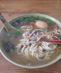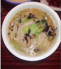 他家的鸭血粉丝超级火爆啊,每每到吃饭点就有大堆学生排起长龙呢,好容易自己也吃到了一次。他家的粉丝有红薯粉,宽粉和米粉可选,个人还是最喜欢红薯粉。一份最简单的鸭血粉丝里面有鸭血和豆腐泡,汤汁清透有点咸,红薯粉有点细煮熟后泡在热汤里会变得有点糊,里面的青菜只有两三片很少。因为不太喜欢吃鸭血,总觉得汤里面也带点鸭血的味道。个人觉得没有南京的好吃啊,不知道为啥这么火。