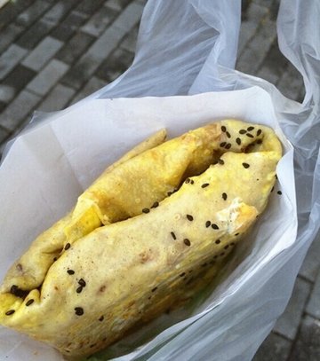 他们家自从上了美食地图以后就特别的火,基本上早上都要排3个人左右。位置不好找,不过离我们家特别的近,在长椿街路口的后面。他们家煎饼的特色就是可以做任何口味的,有普通五谷煎饼,沙拉酱味道的,烤肉味道的,好时巧克力味道的。但是价格也都不便宜,最贵的要18一个!他们家中午还休息,基本上1:30以后 就没有了,下午5点再开门!