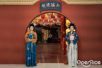 南谣逸境·沉浸式宫廷餐厅(深圳首店)📍南山区招商街道水湾1979商业广场3楼深圳两大新引入的宫廷盛宴我都去过了,而今次第一次去呢间位于水湾1979广场3 楼的「南谣逸境」,决意大快朵颐,感受一下着汉服化妆体验。在K 字头平台买南谣逸境·宫廷餐秀午餐票,共512 港元一人,不包化妆着汉服,可额外加$200港元加配化妆着汉服体验。基本上是花钱买体验的活动。化妆造型师的确功底深厚,画得美美的。汉服可以自由拣,拣选后可直接更衣,拣选后不能反悔,每人只可拣一套,比较干净卫生不设试穿。用膳前NPC会同客人互动做小任务换礼物,气氛不错。用膳地方楼底高,舞台呈长方形,确保舞台两侧的客人都可以看到演员。演员用心演绎,绝无冷场,唯故事剧情不算太吸引,但观众与演员的互动性十足,舞台效果精致。最后更加以蹦迪来结尾 ,有趣。午餐参考菜单:黄金滚沙: 芋头咸蛋黄酥,但系放得太久了,质感麻麻哋,唔够松化。玲珑糯米餈:特别假的人工味,不能形容。【前菜】凝香玉蹄:带点猪臊味,即使用了醋遮盖,但苏臊味太浓。太白醉鱼:鱼肉肉质不错,但不够嫩滑!佛跳墙:鲍鱼,海参花胶,但汤汁浓稠,调味麻麻哋,不是高汤味道。【汤品】金草玉膳鸡:汤品不错,够热,有虫草花瘦肉猪展鸡,汤底浓厚。【主菜】炙牛青韵盘:牛肉非常柴口,黑椒汁特浓带点呛口,整体一般。酥琼御鲜虾:炸粉太厚,上菜时已经冻咗,虾唔够爽弹清韵脆羽蔬:普通小白菜,用上主菜汤汁浸泡小白菜 🥬 好清淡。【甜品】金汤映雪莲:雪莲造型的奶冻没有味道,这是基调用芒果汁,但竟然加上青豆好奇怪。总结:食物质素一般但化妆着汉服体验不错#深圳#南山#水湾1979#南谣逸境#汉服体验#食物质素一般查看更多