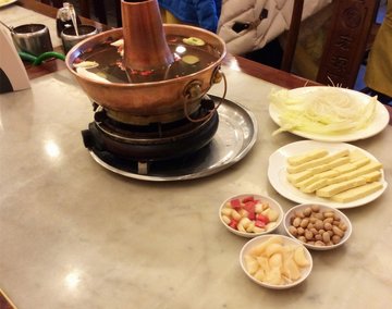 这家南门人比天坛要少的 吃的还算顺利 人多的时候服务员都晕了 大大的铜锅看着就地道 南门的肉都是真材实料 吃的放心踏实 鲜切元宝太好吃了 很是过瘾南门的烧饼也是一大亮点每次必点 热着 凉着吃都是好吃的 服务员很热情