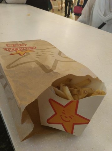 去人民广场附近办事,正好把招行积分换的卡乐星明星小薯条给兑换了。周末他们家生意真好啊,排了一会小队。 他们家小薯条是带这土豆皮的,不知道是放得时间有点久呢,还是本来就这样,这薯条有点软扑扑的,香脆度不够啊,咸淡还挺合适的,给了一包番茄酱,偶尔当小零嘴吃吃,还不错啦。 店员态度还可以,没有因为积分兑换,鄙视我哦。