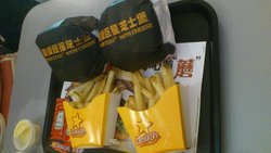 这家的东西size有点大,价格有点贵,味道还挺好,性价比不算高。好大的汉堡,双层的,两片很厚的肉,加上好多芝士,还有酸黄瓜啊,洋葱啊,感觉很震撼,当然,胃口小的不要尝试,根本塞不下,刚吃觉得挺香,越吃越腻的感觉…查看更多