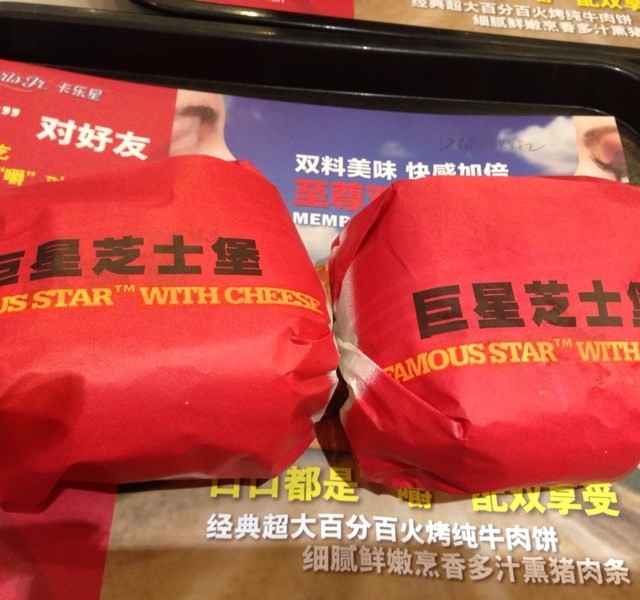 卡乐星的话连锁店现在开的也挺多了~汉堡个头蛮大的~巨星芝士汉堡还蛮好吃的,双层的牛肉饼配上芝士~还有生菜、番茄片很香的~芝士肉酱薯条超级好吃的!!热的时候芝士肉酱配上薯条,薯条好香哦~价格稍微有点贵,不过偶尔吃吃蛮好吃的。