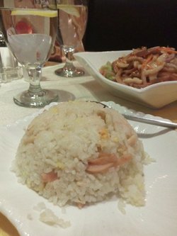 也算是一家西餐厅了,其实晚上的气氛还是不错的,我也很喜欢这样的一种环境或者气氛,但是吃的味道就不是特别好,起码我是这么认为的。餐前来的奶油蘑菇汤,这细腻感不够,入口确实是有点腻腻的感觉。炒饭,卖相一般,味道也确实一般,这饭粒的味道不够香,还有吃起来嘛,也确实不足,配料也很少的,感觉就很孤寒的样子啊。小吃的,芝士焗扇贝,两个人,每人一个,不错,芝士很多,就是扇贝的肉不够厚,但这样薄薄的也有好处,味比较足。其他的,好像甜品也不怎么样,非常一般,那个芒果慕斯蛋糕,做的一点都不好吃。