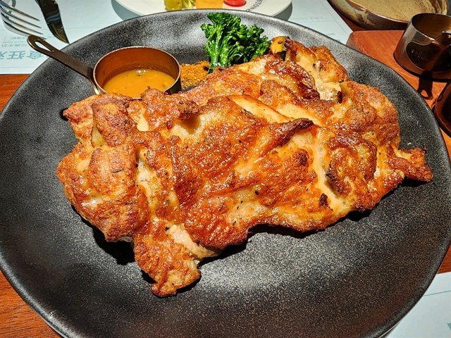 今日和老婆往坂田萬科廣場食下午茶,我們點了二人餐,有原石經典牛扒,法式香煎雞扒,無花果雞肉沙律,露筍南瓜湯,焦糖布甸和美式咖啡,原石經典午扒我們點了七成熟,選了黑椒汁和磨菇汁,牛扒肉質鮮嫩,肉味香濃,配上黑椒汁和磨菇汁味道提升,露筍食落爽口,配菜磨菇和紫椰菜食落美味,整份經典牛扒肉味香濃,口感滿足,法式香煎雞扒賣相吸引,雞扒肉質鮮嫩,雞皮香脆惹味,食落啖啖肉,口感滿足,無花果雞肉沙律,無花果和車厘茄食落開胃,火箭菜和沙律菜新鮮爽口,雞肉和沙樂美腸食落啖啖肉,整份無花果雞肉沙律食落開胃,焦糖燉蛋甜度適中,食落香滑,最好美式咖啡味道香濃,餐廳座位舒適,食物美味,食了一頓美味下午茶…查看更多