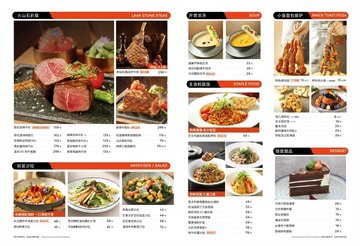 原切澳洲肉眼芯 / 原骨牛肋扒 / 原石经典牛扒 / 法式焦糖布雷 / 胡椒肋眼扒(招牌) / 芝士肉酱烩意粉