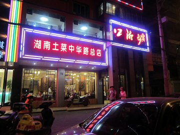 名字听起来很有意思,老板挺有创意啊!店里的湘菜做得不错,价格也挺实惠的。他们家的剁椒鱼头做得非常不错,鱼头很新鲜,剁椒的味道也很正宗,蒸出来的鱼头非常入味,吃起来鲜嫩美味。里面的面条也很好吃,吃起来辣辣的,香香的。长豆角烧茄子也不错,略微感觉有点儿油,不过吃起来挺香的。…查看更多