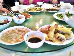 本来跟同事想去饭桶家吃饭的,不过人实在是多啊,又因为有客户在所以勉为其难的找了一家靠河的饭店,没有什么人不过二楼环境还是不错的,只不过味道嘛只能说一般般,价格不算便宜东西却不怎么样,白斩鸡肉质有些老,吃上去有点费力,只能说随便吃吃,好在临河看看风景还算比较惬意。…查看更多