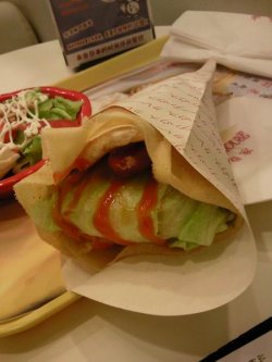 来国瑞的时候看到这家店的,在国瑞的地下一层,在店里看到有15元的优惠活动,很超值呢,15元的套餐里面的内容很丰富呢,都是以肉为主的真是不贵,可以当正餐吃了。要了一份热狗套餐,也是15元的,可丽卷的个头好大啊,里面有热狗一个鸡蛋,还有生菜夹着番茄酱,味道真是不错,很好吃,这个套餐配的是金枪鱼沙拉,就是菜有些多,菜上面洒了一些金枪鱼,好在我也不是很喜欢吃金枪鱼。一个人可以吃饱的也很有营养。回来的时候发现他家有活动可以凭会员卡免费得一杯奶茶,真是不错,准备下次再去吃呢查看更多