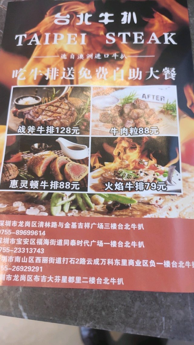 台北牛扒 (星都里) (深圳) 网址: https://s.openrice.com/KtLS0W08X2200 地址: 深圳龙岗区布吉龙岗大道2504号星都里2层2-23号铺 电话: +86 0755-28261764
