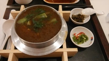 朋友说这家是台式餐厅,但是走进店堂,我觉得布置更像是港式茶餐厅店。虽然是做台式餐饮的,但是提供的大部分是简餐类的套餐,于是点了份名字上有些能代表台式餐饮的三杯牛蛙套餐,26元。不确定是不是现烧的,反正是等了一些时候才等来,套餐包括一份台式三杯牛蛙,一盅冬瓜汤,两份小碟素菜,还有一份水果和米饭。牛蛙的分量不多,个头也不大,大部分都是大蒜,不过用烧三杯鸡的方式烧的牛蛙和大蒜,味道还可以,尤其是大蒜被烧的很酥软,入口软绵绵的,有些抢掉了牛蛙的风头。整个套餐的量不大,勉强吃饱吧。…查看更多