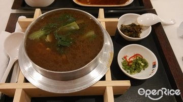 新开的一家店,正好在公司附近,总归要试试看的。环境还是搞的不错的,餐厅搞的看上去蛮干净的,座位蛮舒服的,服务员态度也不错。结果去吃了几次。每天午市有一款特价套餐18米,其他正常价格一般套餐大致在22-28米,感觉一般不是胃口特别大的人肯定量是够吃的,套餐一个荤菜就是你点的,然后每天不同的配三碟小菜,加例汤,米饭。第一次去吃了红烧狮子头饭,里面是有两个狮子头,狮子头无功无过吧,当天正好这个特价18米,价格还是能接受的。红烧牛肉面,他们家面汤不错,肉差不多四五块,不算少,面条还算Q,价格小贵,配了一盘咸菜很咸,直接无视了。星期一特价虾仁炒饭,他们家的炒饭还不错,三个虾仁,饭很香软,属于我稀饭的那种,那天正好配菜也是我稀饭的,蔬菜色拉,西兰花,土豆胡萝卜,味道都不错,汤一般。总体来说他们家还不错的,当然主要分数是加在装修和服务上的。…查看更多