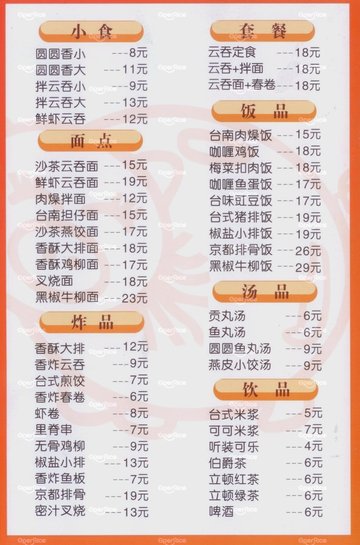 台园圆圆香云吞的店面蛮小的,环境还是很一般的,但是比较干净,价格还算比较实惠,有商务套餐很方便的。他家的虾肉云吞面味道不错的,推荐,虾肉很多很Q弹,量也很大,味道很鲜美。点心的话,春卷觉得还行吧,外皮炸的香香脆脆的,口感不错,还蛮好吃的。它家的沙茶鲜虾馄饨面很赞,味道很浓郁。…查看更多