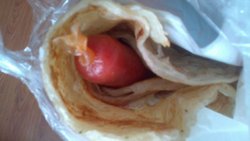 这家店开了很多年了,外面看上去不是很干净的,但是嘴巴馋的时候也没有办法啊,就去买来吃了.现在光饼已经涨价了要4块钱一个了,然后我让他加了蛋,里脊肉,芝士,反正一共花了10块钱左右吧.皮子从冰箱里拿出来的,在铁板上加热,然后加蛋,加肉,加芝士的最后放点番茄酱.味道还是不错的,皮很酥脆,里面的馅料味道不错.价格一般般吧.…查看更多