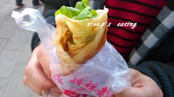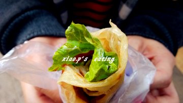 这是我第一次吃【台湾手抓饼】哟~以前在路上看到很多类似的店,也不知道哪个正宗,哪个不地道,这次是饿的不行了,先随便吃点东西填填肚子~品种还不少,有纯素的,有夹里脊的、火腿的——像卤肉饼一样的赶脚~嘿嘿踟蹰了好一会儿,最终决定要了鸡蛋手抓饼,4.5元~店老板是个年轻小伙子,还挺热心的,我选了好半天终于选定之后,他立马就做起来了——一边烙饼一边炸鸡蛋,手法很是娴熟呀~酱料貌似也有好几种选择,有千岛酱,沙拉酱,番茄酱blablabla~我还是比较传统的孩纸,要的番茄酱,看起来好美腻!~最后拿到手的时候,就是卷饼的样子了,绿绿的生菜,配合鸡蛋,向来都是我大爱!所以看到的时候就食欲大起~一口咬下,一点也不油,烙饼很酥,一层一层的,咸淡正好,番茄酱给的不多不少,酸甜适中~生菜很嫩很新鲜,好吃!鸡蛋还是糖心的,美味不解释!…查看更多