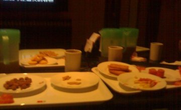 同一首歌自助餐的价格便宜,东西似乎不多,不过人家每一样东西都是即时能够补充的,这一点还是不错的。熟菜里面烤鱿鱼我最喜欢了,鱿鱼的肉质很爽脆,新鲜度是可以的,加了一点豆豉去烤制的,带了点辛辣味。葱爆羊肉也不错,葱粒有点多,呵呵,羊肉也是不错的,没什么膻味,其实和大葱一块吃着也是蛮下饭的。水果挺多的,都很新鲜,不过火龙果是需要排队的。