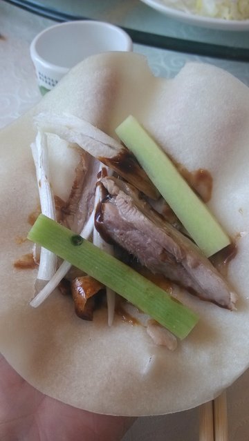 这家店就在和平里东街,环境不错,挺幽静的。2人吃饭,点了半套烤鸭,皮儿焦柔嫩,卷着薄饼吃,特别香。茶树菇牛柳也不错,牛肉很嫩,茶树菇是那种干的,特别有嚼头。凉菜爱吃卤鸭翅,味道特香,还挺入味的,都是用鸭翅中做的,很有啃头。人家60元。