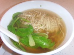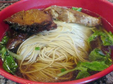 吴越人家面馆的醇香排骨面是22RMB/份,个人感觉面条还是可以的,里面的排骨像是无锡排骨一样,蛮入味的,肉质是一丝一丝的,还是蛮酥嫩的,牙口不好的老年人也可以吃的~排骨不老,烧的很酥的~总共有2块大的,2块小的~面条里面有些青菜,其实洛蛮喜欢面条里面有青菜的,总觉得面汤泡出来的青菜老好次的,比炒出来的菜好次~而且青菜碧绿爽清,看上去老适宜的~…查看更多