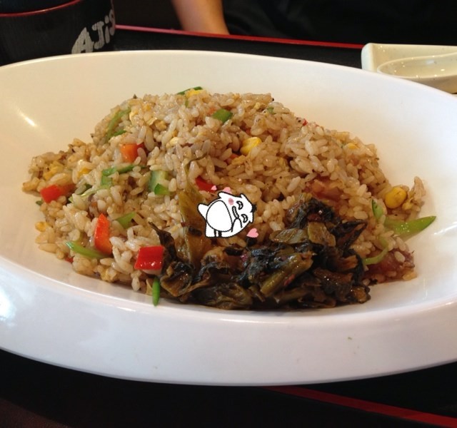 在单位加班,头请客,同事出去打包回来,大家一起吃的。打包的话,汤面之类的就不太方便买了,只能买炒饭,煎饺之类的。炒饭就两种,麻麻辣辣牛肉炒饭和猪肉炒饭,同事说没得选。我吃了麻麻辣辣牛肉炒饭,真的挺辣的,一直喝水。一次性的碗,看上去不大,吃下去还真饱,煎饺都吃不下了。…查看更多