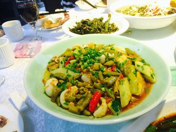这家店以前是味道重庆,就在凯德广场6楼,从必胜客正门旁边拐角的那个电梯上去,就是了。刚上去感觉就像个小区的花园,其实本来也是个屋顶花园,布置的非常有感觉,比在室内吃饭增添了几分乐趣。只是现在这个天气,在户外吃饭还是稍稍有点热。也有室内座位供顾客自己选择。值得一提的是园里还有个秋千,非常好看,找回了童年记忆,哈哈。菜品上来说,非常有印象的是有个凉菜,大概有四五种,是摆在一个像根雕上一样的架子上,而且点了某种东西,有烟萦绕在菜的周围,超有创意。五碟菜分别是:香肠、蚕豆、牛肉丝、板鸭(?)、和豆瓣酱(?)。香肠和蚕豆都超级好吃。鸭嘴鱼也是非常有特色,第一回看到这种生物的说,鱼是用青椒炒的,很辣,鱼很嫩,没有刺,都是脆骨,这个菜换种口味就比较适合老人小孩。冰皮月饼也不错,看起来超级漂亮,晶莹透亮,味道稍欠一点。烧椒炒肉,里面的肉很耙,吃起来有点像梅菜扣肉里的肉,很软糯,一点都不腻,搭配烧椒,很秒。牛仔骨是现场烹制的芒果绵绵冰很不错,从卖相到口味上都很好,芒果味很浓,吃中餐菜单上有饭后甜点简直是惊喜,因为一般的餐厅都很少有。这样也免得吃完饭又去找甜品店,省事了。他家的金桔柠檬超级好喝的,可以去试试。服务很不错,比较热情。性价比来说,性价比不算高,有点小贵。…查看更多