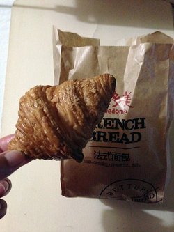 路过古城南路,看见这家面包店,环境不错,因为下午3点多,人不多,看见服务员正在上新烤的面包,牛角现烤的,还热乎着呢。服务员特意拿了纸袋给装的,回家后,尝了一个,很酥松,而且他们做这个牛角还刷了一层薄薄的汤,我觉得不如原味好吃,但是儿子喜欢吃。查看更多
