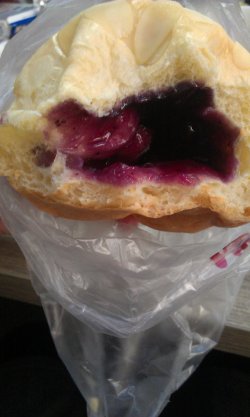 一块小小的看着十分精致的蓝莓面包,应该是新上市的产品,上面贴着薄薄的好像是杏仁酥,咬上一口,软软甜甜奶香四溢,再咬上一口,浓郁的蓝莓酱就出来了,蓝莓放的真的很多,非常浓,酸酸甜甜,好吃得不得了!一个没几口就吃光了!真让人留恋!查看更多