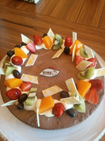 这家店就在西四环南路,环境还是挺不错的,店面很干净。家里人过生日顺便给订的蛋糕,选了一款水果比较多的缤纷盛果蛋糕,20厘米的是198元,上面有6种新鲜水果,其中蓝莓和芒果最爱吃了,菠萝有点生,中间也是2层奶油夹心。