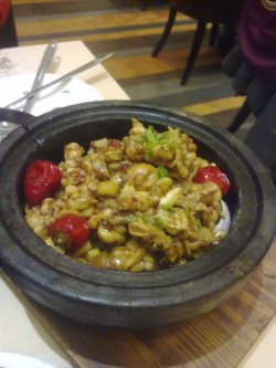 小豆豆@味食尚 豆豆想环游世界等级32012-04-085 浏览 关注 很早就团购的,当时选的是4人套餐,虽然是2个人去吃,但是怕选2人套餐吃不饱,4人的团购也只要108,就果断团了在去龙之梦的路上,人就茫茫多了,然后一层一层上楼,就觉得每个餐厅门口除了排队还是排队,心想,没有预定会不会没有座位啊,到了6楼,找了很久,才找到这家店的,门口有服务员在吆喝着优惠信息,就餐人员不多,很顺利的入座了。先上来的是骨头汤,说实话,不像家里熬了很久的那种鲜味,应该是加了很多鸡精的,当然咯,每天出量那么多,要求别那么高了,汤里面的甜玉米很好吃哦,不过就3小片。。。石锅泡椒牛蛙,套餐里最喜欢吃的一个菜,蛙腿的肉很多,辣度适中,量也不小,旁边有2个红灯椒做装饰小钵子白椒蒸肉,实在吃不惯,就感觉这个小钵子里全是辣椒,没见肉啊,朋友也吃不惯,几乎没动黄焖香菜牛肉,牛肉比较碎比较小,香菜味道融入进去,挺有创意的,但是量比较少,加上碎牛肉片,感觉夹不到东西一样铁板水晶粉丝,本人最喜欢吃铁板粉丝了,虽然油油的,但是很香的,粉丝蛮有韧劲,这一盘下去,填饱肚子了都荞麦窝头,这个一大盘上来的时候,真是一大盘啊,但是我已经吃饱了,和朋友2个人就分了吃掉了一个,剩余的全打包,第二天当早饭吃了,还是比较喜欢吃不加馅料的窝头,有种荞麦的自然香味,没有被调味料所掩盖食神豆腐,一共有8块,很入味,可惜吃不下了,否则倒是很不错的下饭的菜,铁板豆腐哦,打包打包总体来说性价比还是很高的,服务态度也不错,就是位子挤了点,我的书包都放地上了,哎。…查看更多+ 3以上食记乃用户个人意见 , 并不代表OpenRice之观点。赞好分享小豆豆@味食尚 味食尚 https://s.openrice.com/KtLT100Kqy100检举查看之前的留言(1) misu米苏 有几张照片很模糊哟,亲。2012-04-16 回应 Lrose 觉得那个泡椒牛蛙的量很大,味道怎么样?2012-04-16 回应 淡定淡然 最后一个菜真不错 看上去肚子好饿2012-04-23 回应 张贴 评分3味道3环境4服务4卫生4抵食推介美食正正正正正正人均消费¥55 (晚餐)
