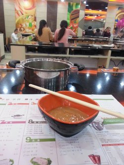 这家店交通方便,离公交车站不远,明亮的环境,卫生条件好。服务员感觉还挺亲切,涮锅是那种是吧台式涮锅,属于中式快餐。点了一份鸳鸯锅,清淡微辣两相宜,现在讲营养健康的配餐,那就荤素搭配,肉蔬菜豆制品食材丰富,牛肉和羊肉看着颜色漂亮,都比较新鲜,涮后吃着热乎乎的,嚼着过瘾。鱼豆腐和豆皮都筋斗,不软不泄,配上蔬菜爽口。沾着麻酱小料觉得还不错。…查看更多