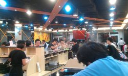 这家店是我所知道的最最新的呷哺,今天6月份才开张的。开张搞了7天半价,结果附近居民倾巢而出,大有不吃白不吃的架势,人扑扑满。当然,我也没什么资格说别人,因为我也趁便宜去吃过一回,还排了2个小时的队