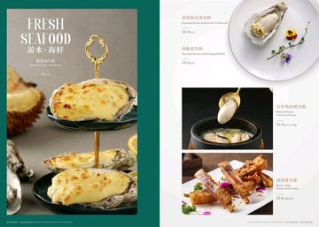圣丰乳鸽皇 / 酱汁蒸凤爪 / 鹅肝酱虾仁黑豆腐 / 圣丰虾饺皇 / 南姜士多啤番石榴 / 金沙红米肠