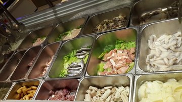 属于火锅、烧烤类自助餐,午市68元/位、晚市78元/位,用餐时间100分钟(以上锅底开始计起,不过你在吃,店家也不会赶你的)。这次使用了淘点点半价抢购的代金券,更超值哦!该店位于华发北路和振中路交界处,幸福西饼的楼上。面向华发北路边上有一楼梯直上,才是品乐汇的用餐地方。环境上,十分普通简单,有简易的卡座,卡座两边吹着电风扇。大厅中间是有3、4台空调的,可能楼高低,几乎用餐的人都吃火锅,不够用才使这么多风扇出场。单是锅底就有8种选择,一人一小锅吃起来比较干净卫生。自助调味料20多种,凉菜几款,连主食热菜(炒河粉)都有。饮料不同于其他自助餐厅,是独立包装的,而非饮料机自助,冰柜里摆好几种(雪碧、七喜、可乐、加多宝、芬达、矿泉水、雪花啤酒等),连鲜榨椰汁都有。涮品的种类可就多了,三个大冻柜,玲琅满目的呈现在你面前。冻柜一:海鲜类有脆皖鱼腩、脆皖鱼、鱿鱼、基围虾、小蟹、田鸡、多春鱼、黄骨鱼……我比较喜欢吃脆皖鱼腩,基围虾新鲜得活蹦乱跳,然后净拿小蟹盖吃。别看蟹下,盖里还是有些膏的,我吃了十几只。冻柜二:肉类有肥牛、肥羊、牛百叶、黄喉、猪脑、粉肠、鸡脚……肥羊有些碎,吃肥牛和黑牛百叶多些,觉得走得快的涮品新鲜度最高。冻柜三:菌类丸类豆制品等,冻豆腐、土豆片、莲藕片、木耳、金针菇、香菇、牛肉丸、鱼丸、蟹柳、火锅面……还有一个立柜,上面是各种各样的蔬菜,全部都无限量自取。在涮品区旁边,有店员固定在那盯着,时刻留意哪种涮品少了立即通知后厨补充上。用餐期间,服务员还时不时的过来清理骨碟、饮料盒;连清洗餐后的桌子也是推着装有清洁用品的小车擦拭不少于3次。餐后上洗手间,发现店家考虑的真周到,因为吃火锅完难免一口大蒜味道,店家提供了一次性的牙刷供客人刷牙。我也刷牙了,见牙刷挺好用的,不舍浪费顺便带走。我不是占小便宜,建议店家可以提示牙刷用完后让客人带走再用,直接丢掉未免过于浪费了。…查看更多