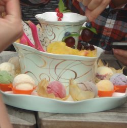 哈根达斯的水果冰激凌下午茶真的是很华丽啊,水果有蓝莓、菠萝、樱桃。冰激凌有奶香味道、抹茶味道、草莓等的口味,吃上去口感酸甜适中,而且味道也是正宗可口。总体来说口感一直都是相当浓郁,味道也是没有一丝丝的甜腻味道,适合下午茶的时候来享用。查看更多