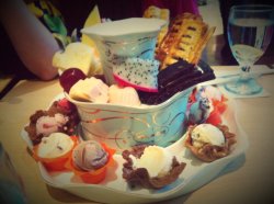 推出酸奶冰淇淋火锅的时候去吃的陶瓷的火锅看起来很美型啊冰淇淋口味多多 有雪芭 有抹茶 有香草 有树莓 有巧克力 口味多多 选择多多上层还有火龙果 葡萄等等水果 和华夫饼一样的饼干 沾着酸奶一起吃 美味加多一倍哦蓝莓芝士蛋糕也蛮好吃的