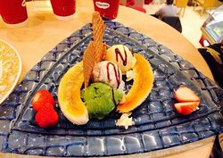 哈根达斯的品质没的说,逛APM,顺便吃的,跟商场是半开放的环境,我们也是顺便休息一会。点了一份爱琴海之舟,样子很漂亮,特别喜欢这个蓝色的水晶盘子,有3颗冰淇淋球,还有香蕉,用饼干充当风帆,造型非常美丽,冰淇淋最爱抹茶,不甜腻,入口很滑。查看更多