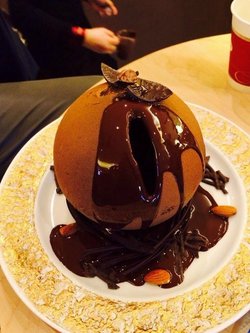 这家店就在君太百货1楼,环境还是挺不错的,人不多。点了一份比利时绽放,88元,这个其实比买单球划算多了,外皮是一个巧克力皮,浇上热可可酱,中间是冰淇淋球,2人吃一份足足够了。查看更多
